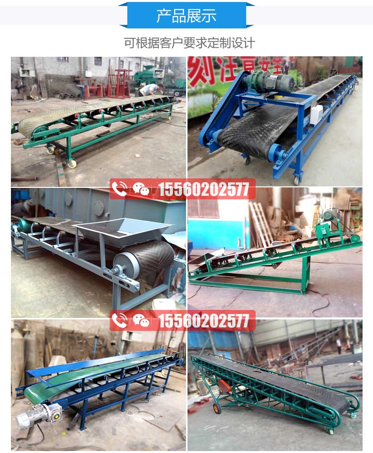 DY型可移動式皮帶輸送機適用于散狀物料或成件物品的短途運輸和裝卸工作。采用鋼管結構,輕巧美觀,機動性好。轉動裝置為電動滾筒,并配有充氣輪胎和鋼輪兩種行走輪。機長10米以上傾角可調。