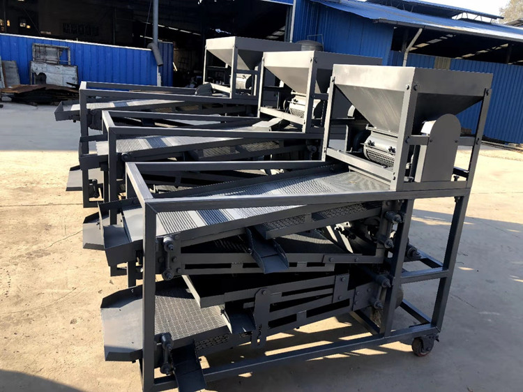 原枝花椒投進料斗后--------粉碎裝置將原枝花椒進行粉碎,將枝葉殼籽分別剝離下來--------通過下料器一起落到篩面上進行分離篩分---------一層將篩出來的是大枝干、梅花椒、石子,復試篩網篩出來的是花椒枝--------二層篩出來的是花椒籽,椒籽出來的地方有風機,將里面輕的雜質篩選出來-------三層是為篩分椒枝設計,整層篩出來都是花椒枝------底層篩出來的是花椒殼,復試篩網是塵土雜質等。